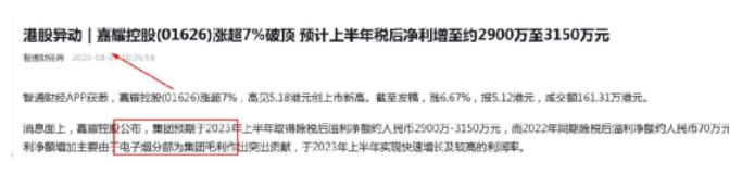近日看到一些消息令人关注,就是这个企业电子烟贡献突出,预期上半年净利同比增超40倍,而半年电子烟业务收入了超过2个亿。其明确表示“溢利净额增加主要由于电子烟分部为集团毛利作出突出贡献”。