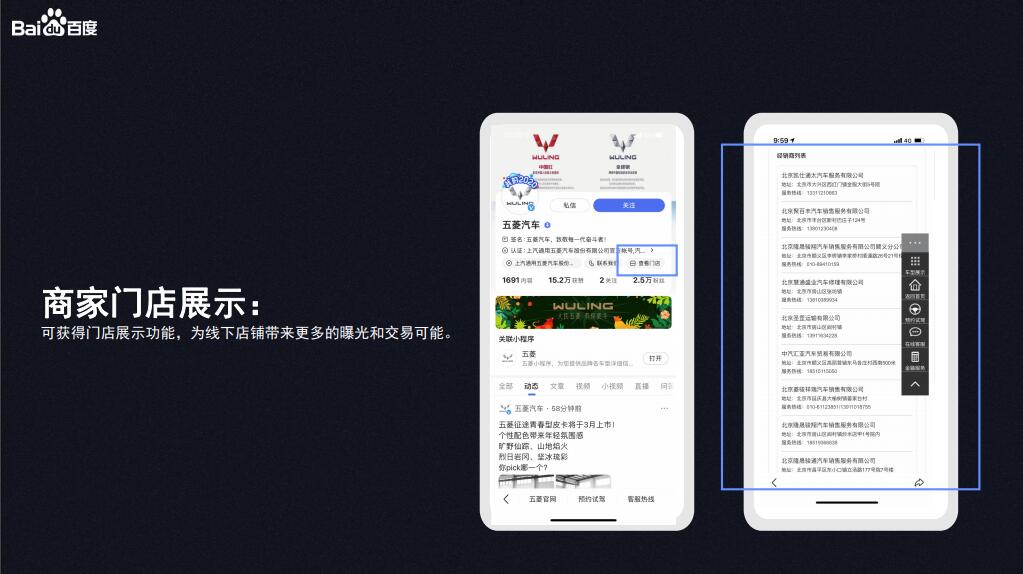 企业权威认证的企业号,发布“动态”挂载地理位置(POI),内容同城可见